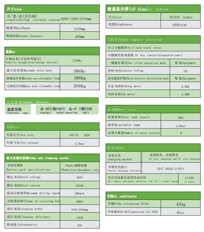 JC-DEV8240 多媒體掃路機(jī)配置有全景玻璃結(jié)構(gòu)的駕駛室,舒適冷暖空調(diào)、安全警示工作燈、10.2寸超大觸摸屏、 一鍵操作按鈕、行車 和倒車雙錄高清行車儀 。70kwh 的超大容量電池組65寸大液晶顯示屏 ;掃刷轉(zhuǎn)速采用手柄式速度調(diào)節(jié)閥控制,可以根據(jù)道路實(shí)際路況控制無(wú)級(jí)調(diào)速 ;清掃掃刷位置和吸風(fēng)口位置采用水霧噴淋裝置,確保在清潔過程中不會(huì)產(chǎn)生揚(yáng)塵造成二次污染 ;該機(jī)掃刷寬度有調(diào)節(jié)功能,可由1.6米調(diào)節(jié)至2.4米,廣泛適用于城市非機(jī)動(dòng)車道、城市廣場(chǎng)、公園、體育場(chǎng)館、會(huì)展中心等場(chǎng)所的清掃作業(yè)。